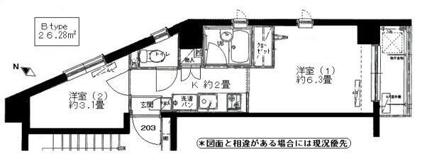 | 築年月 | 2001年11月 | 間取り | 2K | 面積 | 26㎡ |